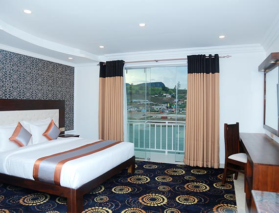 The Deluxe Triple Room features 1 comfortable King size bed, 1 comfortable Single Bed, a range of fabulous amenities, atech bathroom, a huge LCD TV, and wonderful view from balcony, it'll make your stay feel like a home away from home.
